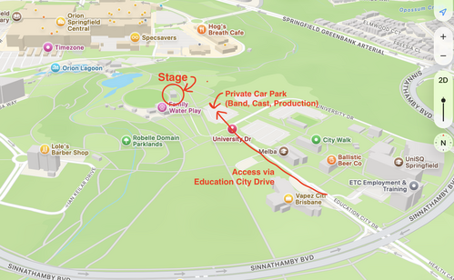 - Parking: Private car park for cast, band, and production only. Your name will be on the access list at the gate.